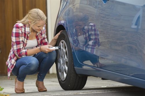 A quick air check can be the difference between a bumpy road trip and smooth sailing. Begin by driving around for a couple of miles because tires that have been parked for a while won’t have as accurate of a pressure reading. Then remove the valve cap from the tire, place the pressure gauge on the valve stem, and press until the hiss sound disappears and the gauge offers a reading. This reading should match the recommended PSI, which you can find on the driver’s side door jamb or in the owner’s manual. If the reading indicates the tires need air, head to your local tire shop or gas station.