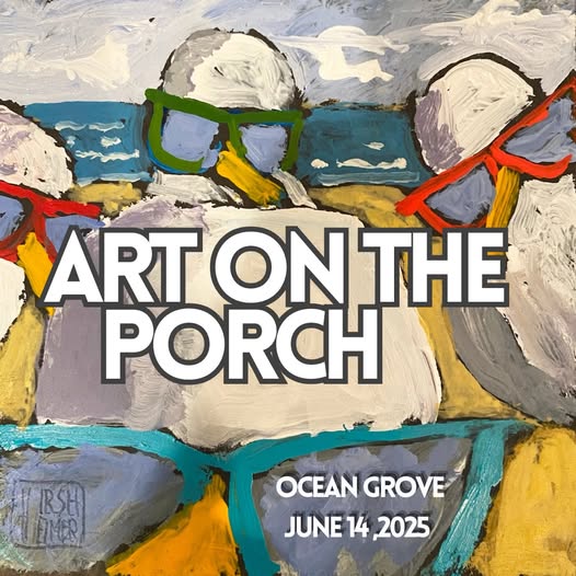 However, the heart of Art on the Porch will remain exactly where it belongs: on Ocean Grove’s beautiful porches, surrounded by incredible art and the community that brings it to life.  Stay tuned for more information and a fresh logo coming soon, but for now mark your calendars for June 14, 2025!Â