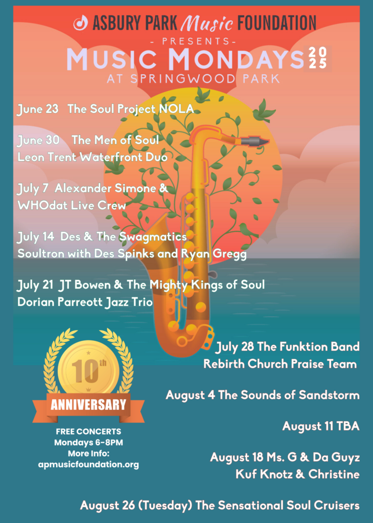 To see updates and receive alerts, follow APMF on Facebook and Instagram. For sponsorship opportunities or to donate directly to APMF’s mission, visit asburyparkmusiclives.org or email info@apmusicfoundation.org.