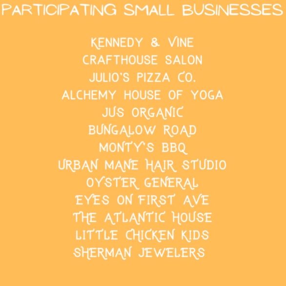 Participating merchants to date include Kennedy & Vine; Craft House Salon; Julio’s Pizza Co.; Alchemy House of Yoga; Jus Organic; Bungalow Road; Monty’s BBQ; Urban Mane Hair Studio; Oyster General; Eyes On First Avenue; The Atlantic House; Little Chicken Kids; and Sherman Jewelers.