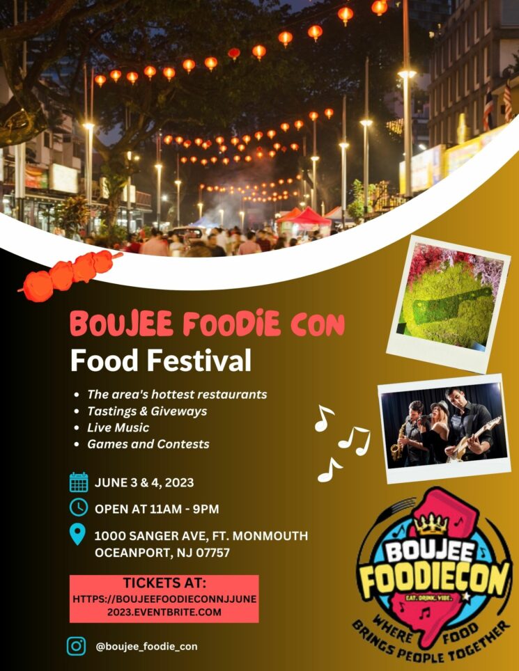 CW Events is bringing its first-ever Boujee Food Con to the grounds of Fort Monmouth. Mark your calendars for Saturday, June 3rd and Sunday, June 4th and come hungry. This outdoor one of a kind food convention mixed with music, games, culinary contests, workshops, and beyond, will be an unforgettable experience for foodies, families, music lovers, and the community.
