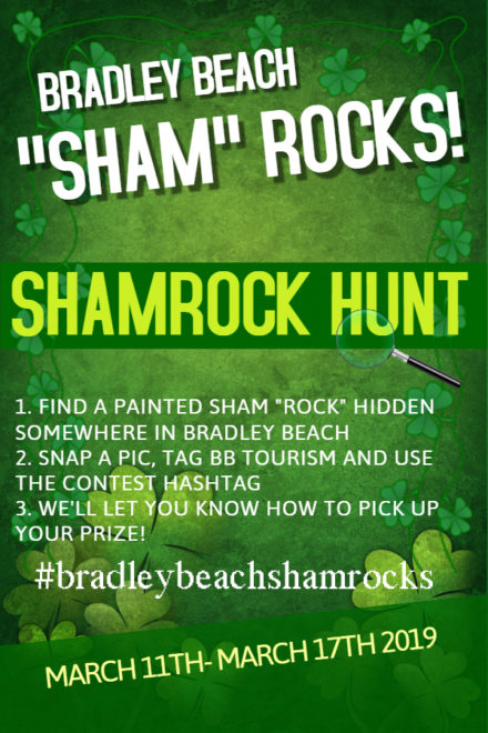 During the week leading up to St. Patrick’s Day, magic rocks with shamrocks painted on them will be hidden all around Bradley Beach! The boardwalk, Main Street, Riley Park and more!