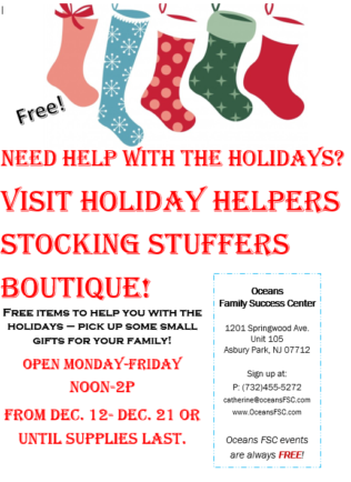 We are giving away small toys and other stocking stuffers to help! If you are in need, please stop by our “Holiday Helpers Stocking Stuffer Boutique” which will be open on weekdays from noon – 2 p.m. starting Wednesday Dec. 12 and running until Dec. 21 or while supplies last.