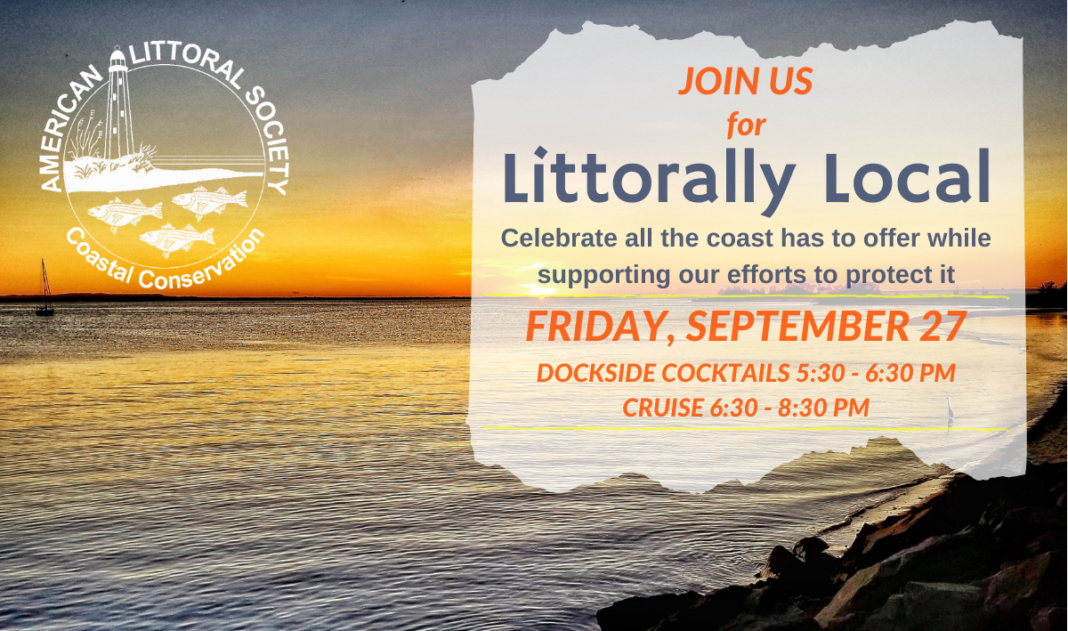 Please join us for the Littorally Local Sunset Cruise and silent auction, the Littoral Society’s fundraiser to care for the coast, which departs from Atlantic Highlands on Friday, September 27.