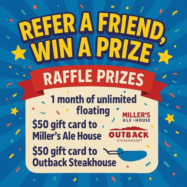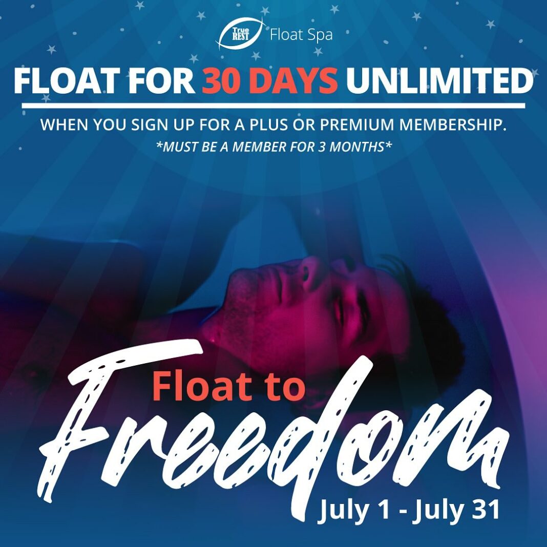 Sign up for or upgrade to a PLUS or PREMIUM membership during July and get 30 DAYS of UNLIMITED FLOATING! That’s unlimited stress relief, recovery, and relaxation all month long!