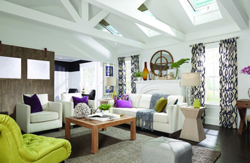 Whether you’re seeking more natural light, access to fresh air, a sense of spaciousness or a way to bring sophistication to a room, a skylight may be just the solution. For example, Velux room-darkening and light-filtering blinds can add a splash of color just where you least expect it, and they’re efficient in shielding your space from the sun, meaning the blinds and installation are eligible for a 30 percent tax credit. Learn more at whyskylights.com.