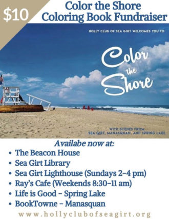 The Holly Club of Sea Girt has produced a unique fundraiser coloring book entitled “Color the Shore.” Featured in the sixty page book, are popular scenes and historical locations of Manasquan, Sea Girt and Spring Lake for kids of all ages to color. Captions in the book provide tidbits of local lore, words of inspiration and fun. The proceeds of the fund raiser will go to further the mission of the club for beautification throughout the community.