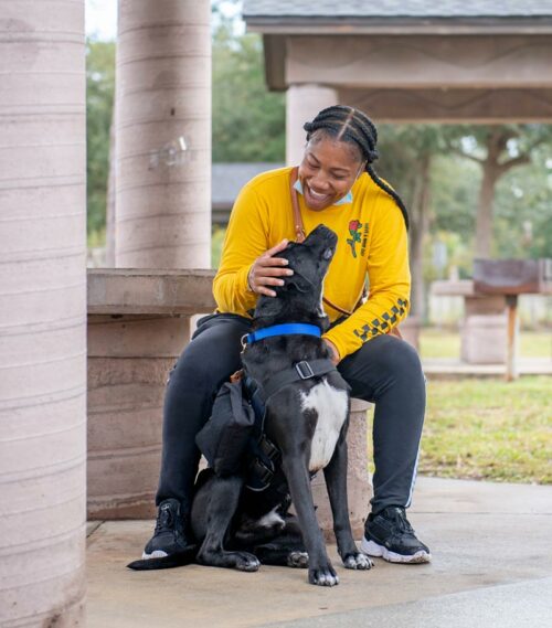 And that’s how she got her service dog, Lisa. Clark-Gutierrez’s husband, also an Air Force veteran, discovered the nonprofit group https://k9sforwarriors.org/, which rescues dogs — many from kill shelters — and trains them to be service animals for veterans with PTSD. Lisa is one of about 700 dogs the group has paired with veterans dealing with symptoms caused by traumatic experiences.