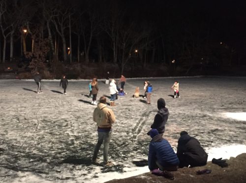We all have so many memories of growing up and being able to ice skate on our local lakes and ponds. This winter brought back that special treat and the community has wasted no time in getting out there on the ice! According to the Spring Lake Police Department: “The ice on the Spring Lake was tested on January 2nd was deemed acceptable for group activity. The designated safe area is clearly roped off near the flagpole at Third & Passaic Avenues. Please be respectful of the neighbors and be careful on the ice.” Lights were brought in so we can enjoy skating at night-time. There’s something nostalgic about skating outdoors. The experience is worth sharing with our kids and making memories for them to carry in to adulthood.