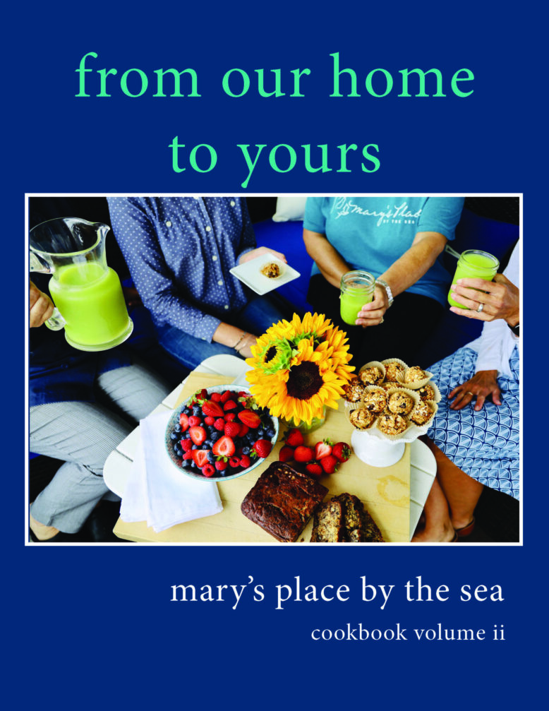 Mary’s Place by the Sea has offered Nutrition Education since its founding. These sessions help guests as they navigate life with cancer and learn which foods can nourish them as they go through their treatment. Having an in-home chef has taken that education and served it up on a literal plate for the guests, who love to sit around the counter in the large teaching kitchen and ask Cathy questions about what she’s preparing, hanging on to every tip and trick she has to offer. In 2017, Mary’s Place by the Sea released its first fundraising cookbook. Guests, volunteers and supporters of Mary’s Place now had access to the recipes that were so much a part of our new home.
