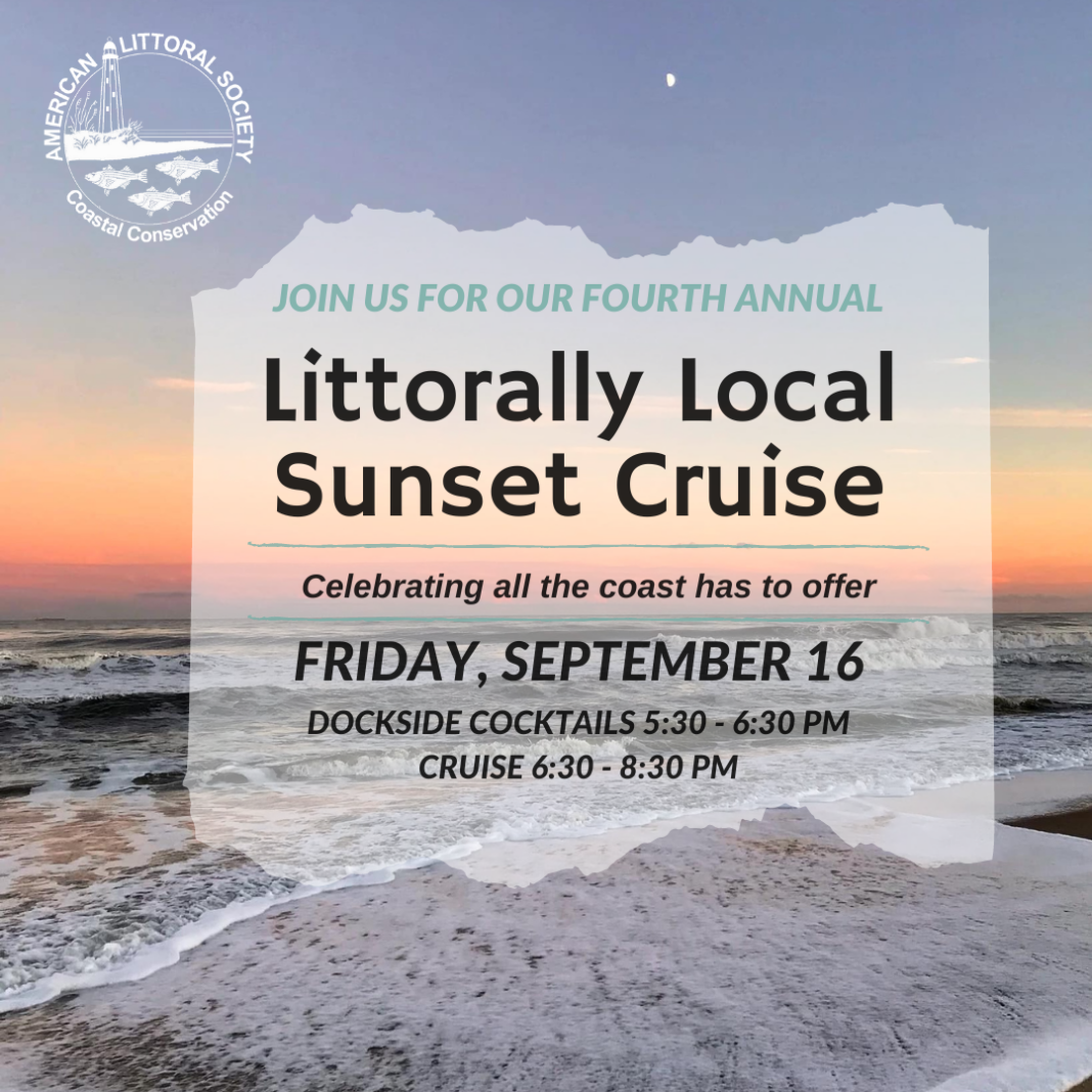 The American Littoral Society invites you to our Littorally Local Sunset Cruise, the Society’s fundraiser to care for the coast on Friday, September 16 in Atlantic Highlands, NJ!