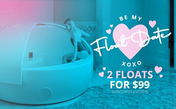 Floating is better together. This Valentine’s Day, plan a day of deep relaxation and love for yourself and your special guest. For a limited time only, treat your Valentine to the best in relaxation buy purchasing two Floats for $99! Allow our staff to help you have the perfect date night with a 60 minute Float and our Oxygen Bar.