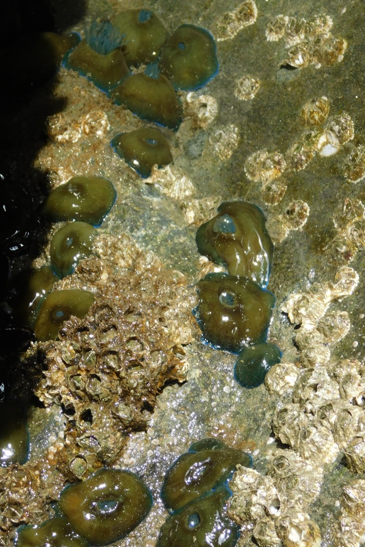 Although the species can be a variety of colors, the ones located in New Jersey have a blue ring at their bottom, pale green bodies, and matching green tentacles with blue tips. They are known as aggressive predators which use their tentacles to capture small fish, crabs and mollusks, then retract them and close up during low tide to conserve moisture.