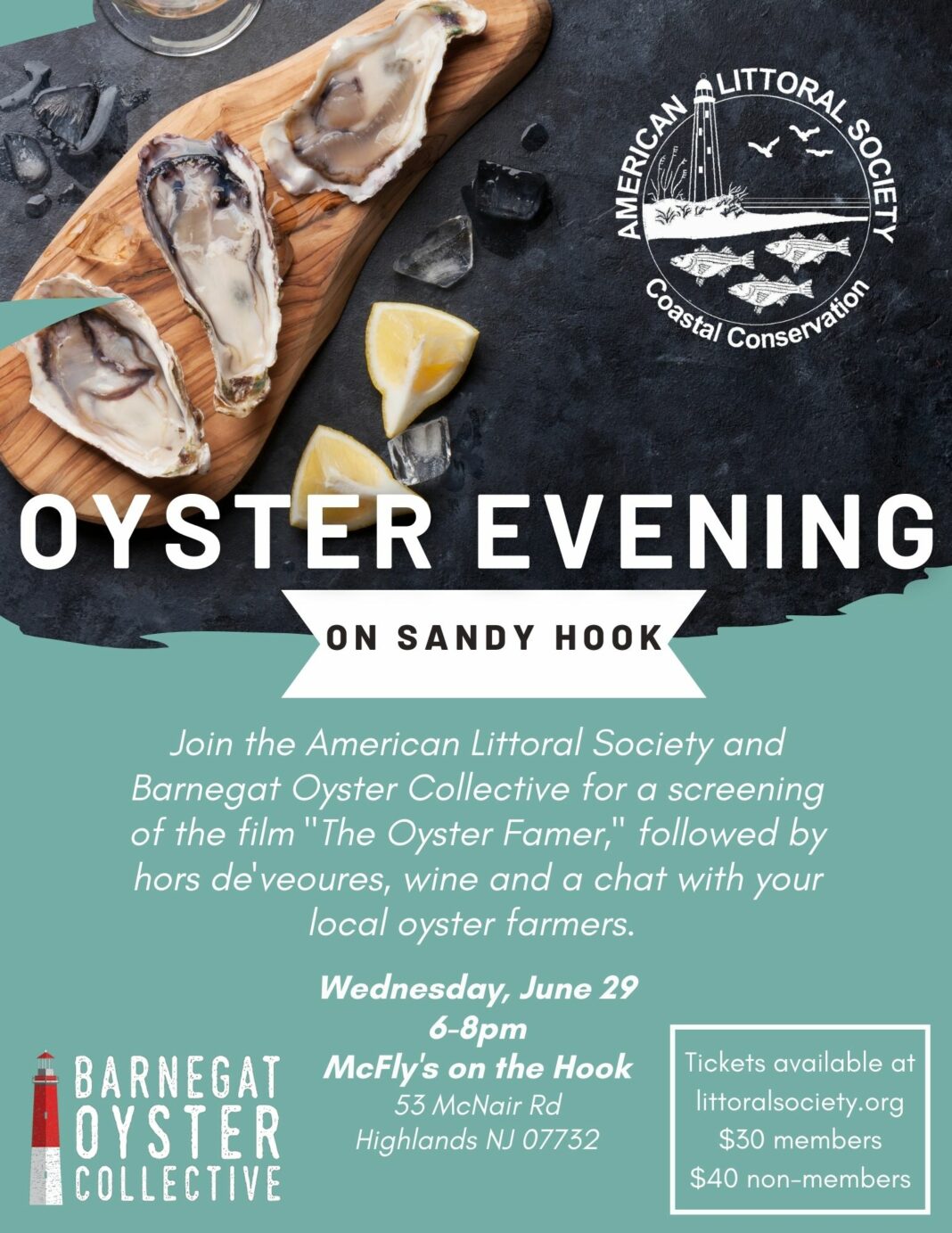 Join the American Littoral Society and Barnegat Oyster Collective on Wednesday, June 29 from 6 – 8 p.m. at McFly’s On The Hook, 53 McNair Road, Highlands