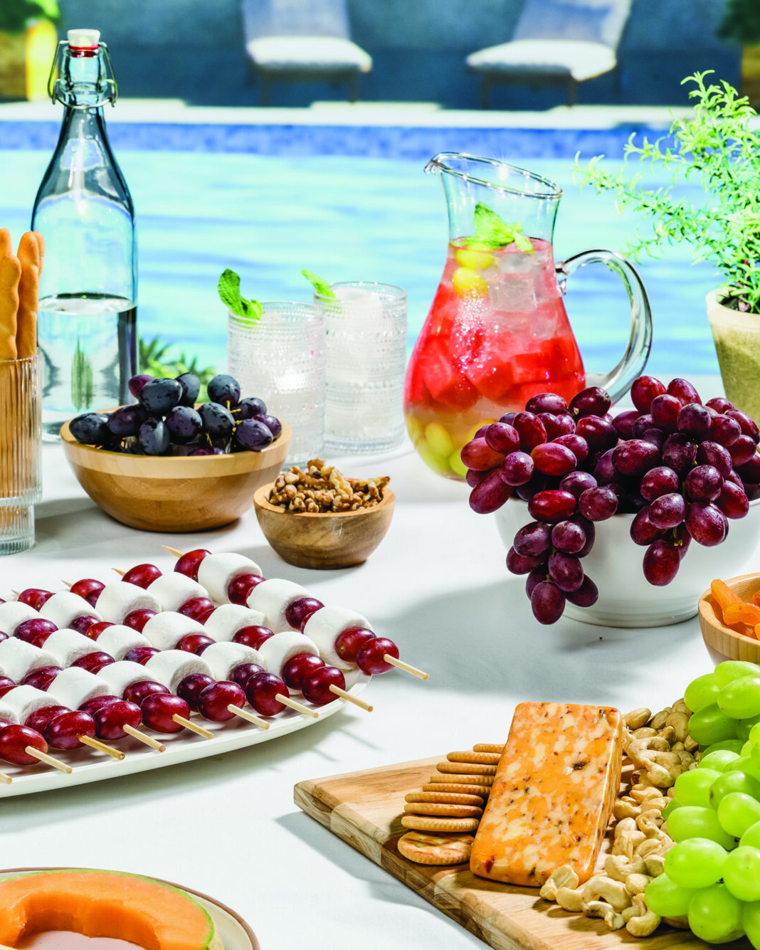 Drinking water and staying hydrated is important year-round, but especially when it’s hot and you’re more likely to lose water content through sweat. Keep your body full of moisture with simple and delicious Grape-Infused Waters. For a zesty kick, try Grape, Ginger and Lime that combines the sweetness of grapes with the zing of ginger and lime, or Grape, Lemon and Mint, offering a bright and invigorating blend of citrus and mint. Enter your Zen state with a mellow, spa-like sip from Grape, Cucumber and Mint.