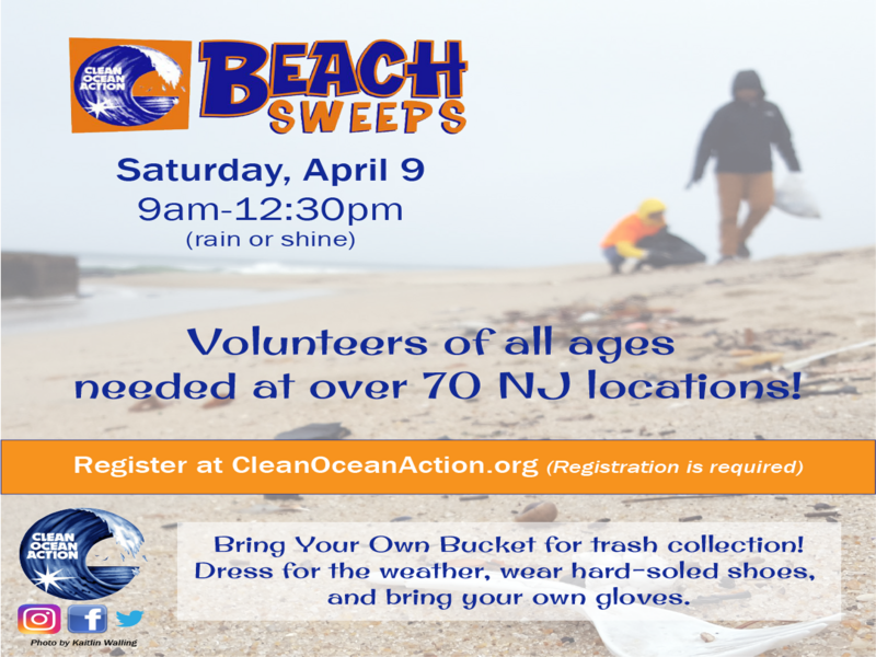 Registration is now open for Clean Ocean Action’s Spring 2022 Beach Sweeps on Saturday, April 9 from 9 am-12:30 pm!