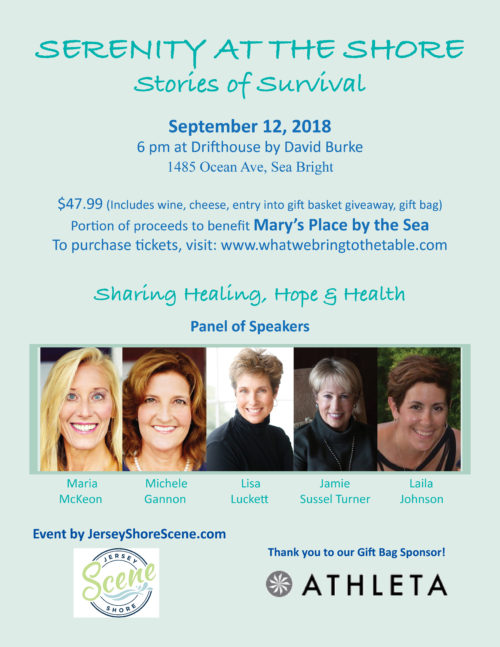 By Tracey Hall ~ Mary’s Place by The Sea is a serene and welcoming retreat for women going through various stages of cancer. From delicious meals to top notch amenities, it’s founders Michele Gannon and Maria McKeon have created a haven of healing just when women need it most. On September 12th, we are hosting these two incredible women at our table to discuss their story and how they found it within themselves to create Mary’s Place. If you’d like to attend this event, please click: https://www.whatwebringtothetable.com/ for more information and tickets.