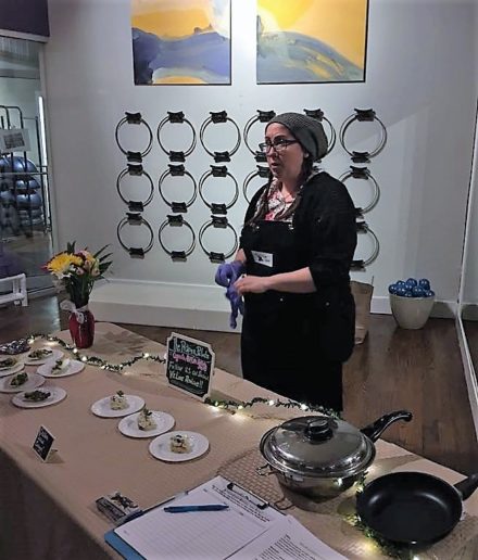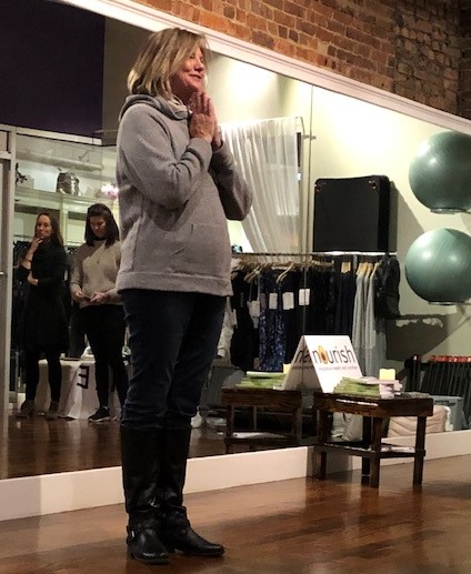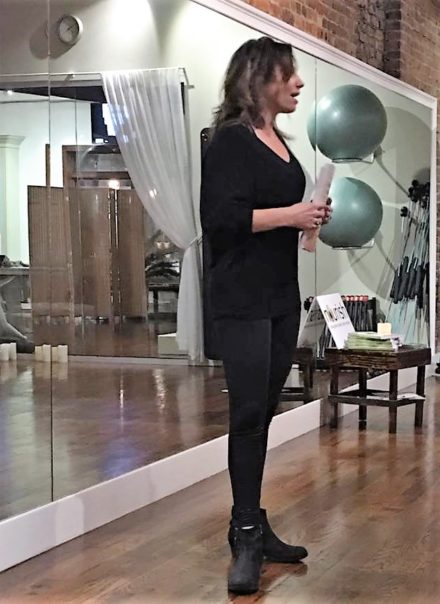Danielle Buccellato, the owner of Renaissance The Studio and host of the event, discussed the importance of breathing and good posture and led the audience in breathing and stretching exercises designed to encourage guests to be mindful about alignment of the hips, spine and other muscles and how Pilates can help.