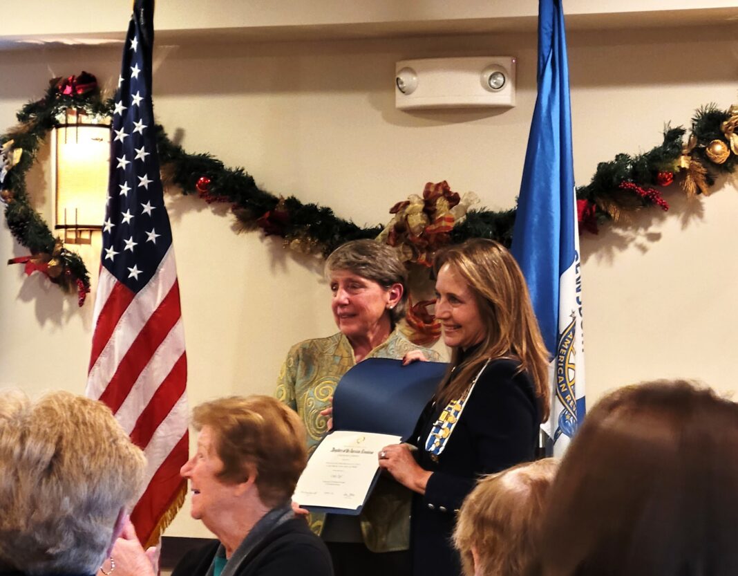 As the presentation ended, Shrewsbury-Towne Monmouth Chapter Regent, Leslie Clark asked Cindy to approach the Dais. “The National Society of the Daughters of the American Revolution, has a conservationist award, it’s a national award, and it’s the highest such award that the National Society has.