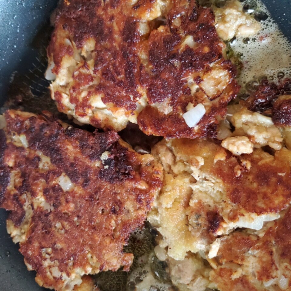 Make into patties. If the mixture is too dry to form into patties, add reserved liquid from salmon.