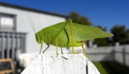 Katydids live a solitary life, other than mating, they’re on their own. Sound, of course, is communication and often many males will sound off for quite a distance to attract females. Their front wings have special structures that when rubbed together make sounds. Males are the primary sound producers and can also communicate through vibrations. They may resort to vibrating to communicate when in danger of being detected by enemies.
