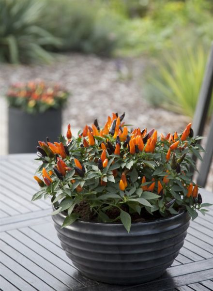 Or you can choose a unique plant with warm tones, like the bright and colorful Ornamental Pepper, with such attractive multi-colored fruits that they are grown just for show. The Ornamental Pepper displays intense shades of yellows, oranges and reds in its fruit.