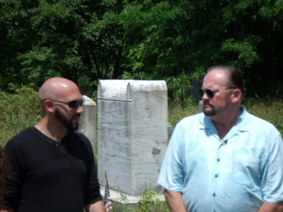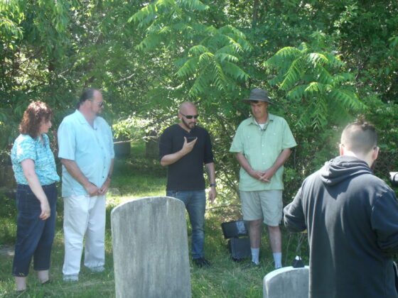 Several months passed by, and then I received a text once again from Jo Ann Slocum Mazzucca. It seems she had been in a different cemetery, placing flags for Memorial Day on the graves of her family members, when she ran into a paranormal investigative team shooting for a new TV show. She told the show’s host, Mike Mazza, about my experience in the old First United Methodist Church Cemetery back in March.