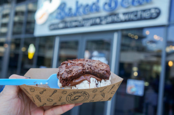 Well known for its monstrous ice cream sandwiches and original, baked-from-scratch recipes, the menu features 12 scratched-baked cookie and brownie flavors and 13 super-premium ice cream flavors.