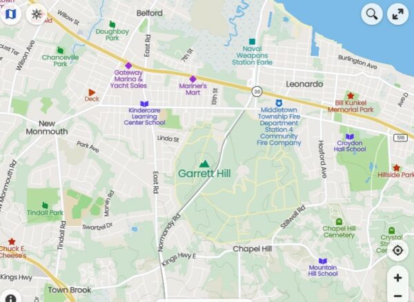 In addition, there are many hidden and overgrown burial grounds along King’s Highway East and the surrounding area, along with historic sites that are long forgotten. For example, Garrett’s Hill, once used as an observation post for Colonial soldiers, is hidden away and restricted, along Normandy Road on Earle Naval Base.