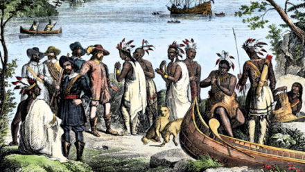 Half Moon came to anchor off the future location of the old steamboat Pier near the site of today’s restaurant: “Sissy’s Place”, in the Atlantic Highlands Harbor.  Hudson and his 20-man crew were amazed at the abundance of fish and game in the area. On September 4, local indigenous people, dressed in loose-fitting deerskin garments, came to the ship in canoes bringing gifts of Maize and Tobacco.