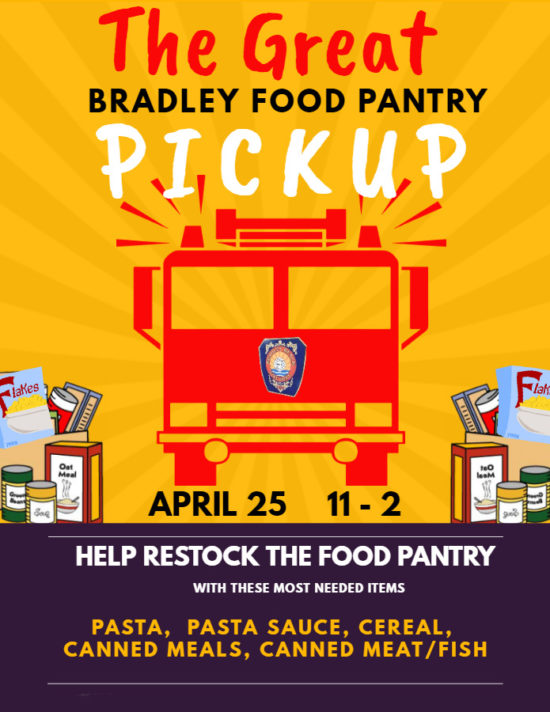 Please consider leaving a donation so the Bradley Food Pantry can stop hunger and feed hope to all who rely on the pantry at all times and especially at this time of crisis. ‪We know these are tough times for everyone. If you are only able to donate one item, that will make a difference. With your generous donations, we will be able to feed the hungry and bring some hope to all who rely on the pantry. We are all in this together! ‬