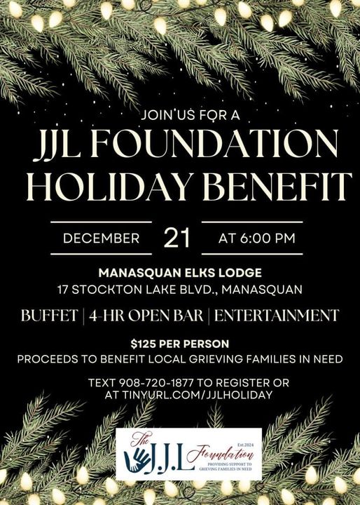 Help local grieving families in need this holiday season. Join us for the JJL Charitable Foundation Holiday Benefit on Saturday, 12/21 at the Manasquan Elks Club.