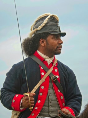 He arrived at the British encampment around noon of the next day. He was taken to Refugeetown, really more of a tent city rather than a town, and given food and water. The next day he started training in how to use a musket and sword. The first time he fired he must have been startled by the noise, as a gun was not something that he would have known much about.