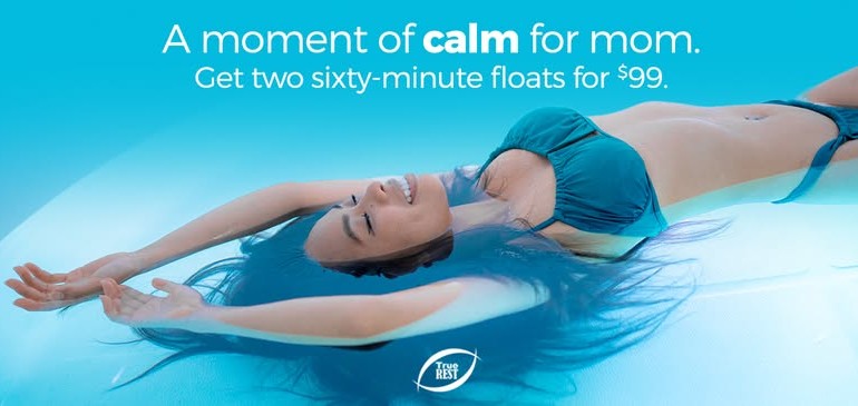 Our Mother’s Day Special is happening now! Stop into your local True REST and take advantage of their Moment of Calm deal now! Get TWO 60-minute floats for Mom for just $99! Just in time for Mother’s Day!