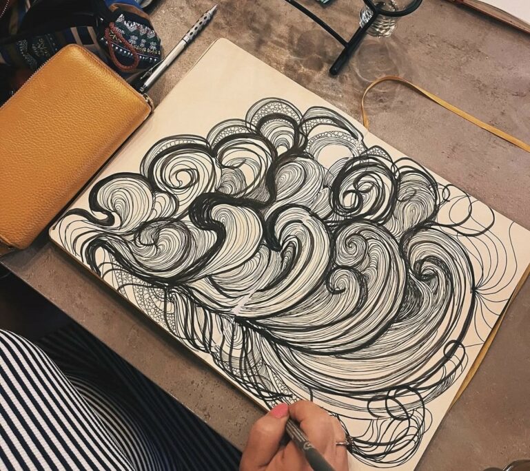 Kate: “Believe it or not, it all began with Charlie Brown cartoons. I used to love drawing Snoopy as a kid. I also took a bunch of art classes in high school and college, but the idea for this sketchbook workshop didn’t really hit me till I went away on a meditation retreat in Hawaii last year. I just loved the whole community of it and how it brought people together, and it motivated me to try and host my own back home.”