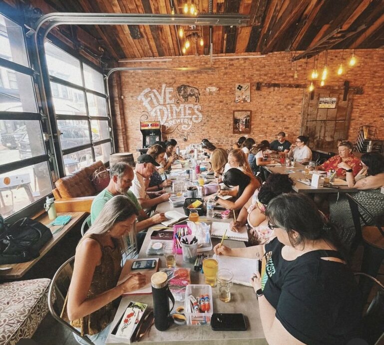 Over the past month, I discovered a new workshop event that regularly takes place at the Five Dimes brewery in Red Bank. It’s called the Sketchbook Club, run by Kate Maldjian of Manasquan.