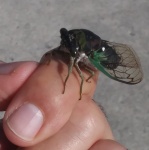 The ‘early show’ Cicadas are known as Periodical as these hatch out in early June every 14-17 years. Of course, different generations emerge each year…often a baby boom year hits and they’re everywhere! Periodical Cicadas are dark with red bulging eyes.
