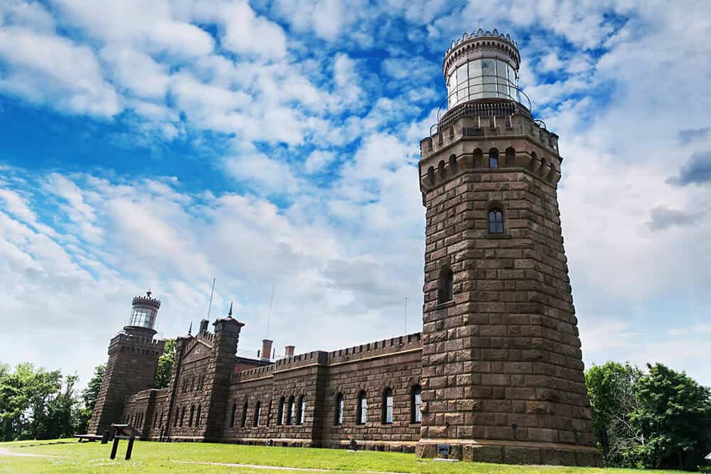 The Twin Lights rise above the Shrewsbury River and are situated on one of the highest points along the East Coast waterways. It overlooks Sandy Hook Bay, the entrance to the New York Harbor and the Atlantic Ocean.