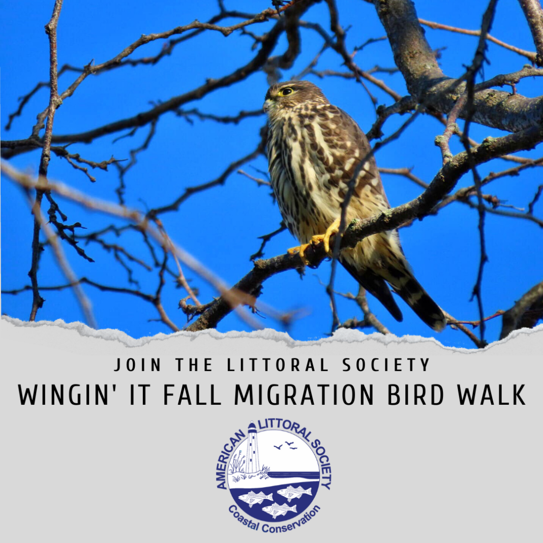 We will meet at Littoral Society Headquarters and then head out on the paved multi-use pathway. We will walk for about 2 miles. Please dress for the weather, wear closed-toe shoes, bring water and binoculars if you have them. The Society also has Nikon 8×42 binoculars for participants to borrow during the walk. Let’s get birdy!